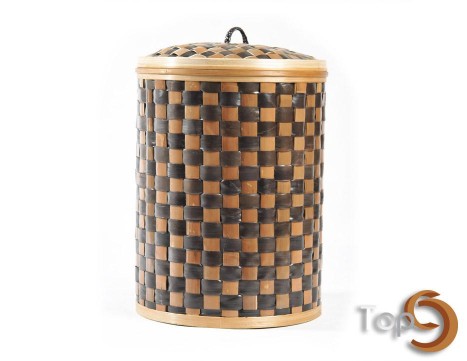 A Bamboo caned work Laundry Basket with chessboard pattern