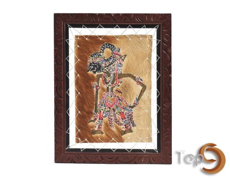 A decorative wall frame displaying wayang figure