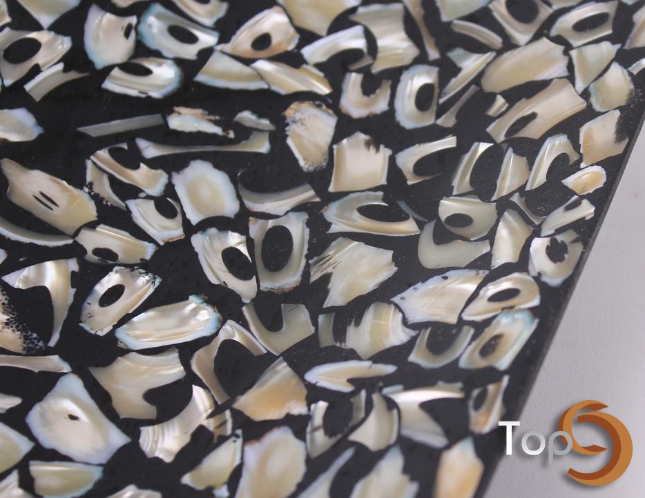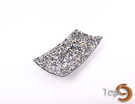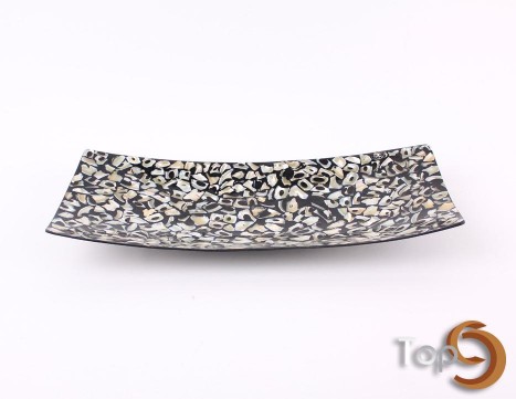 A rectangular plate made from shells