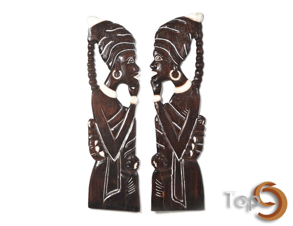 A set of 2 decorative face to face wall panels with tribal ladies figure