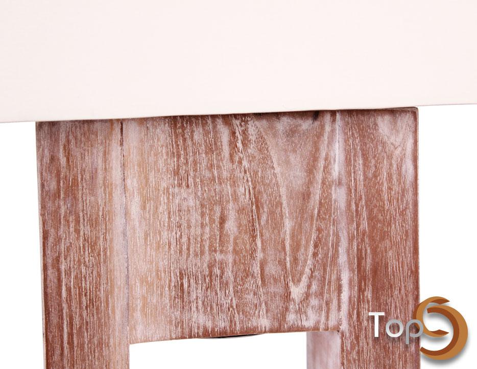 A standing lamp with natural finish and orange lampshade