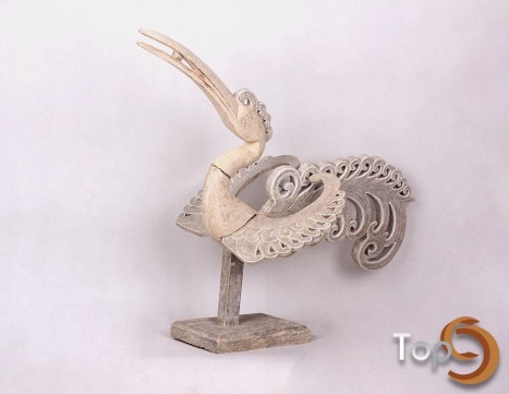 Description A 3 colors open wings bird centerpiece with antique finish