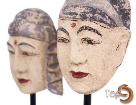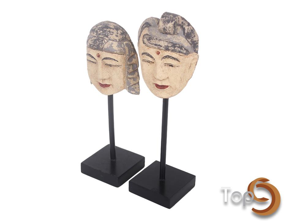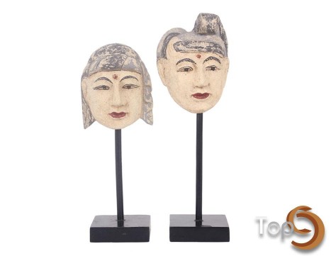 Description A set of 2 Indonesian traditional royal advisers’ head figurines
