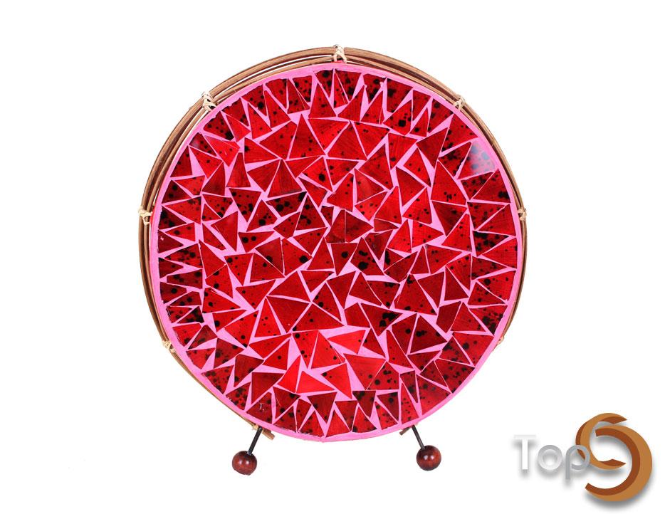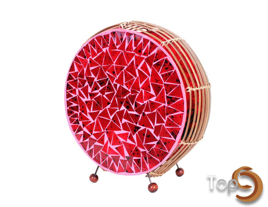 A round table lamb with glass fragments and bamboo combination