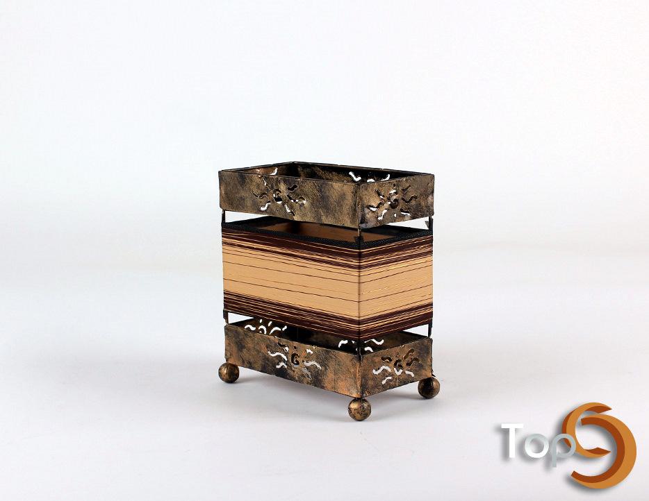 A square table lamp wrapped in colored thread