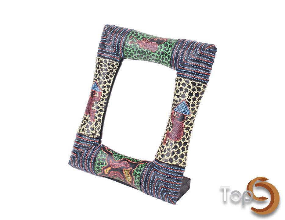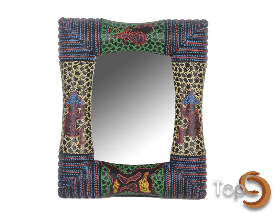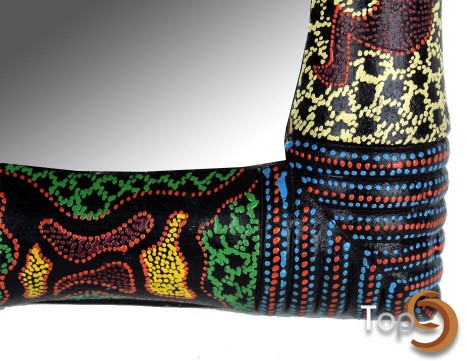 A table mirror with colorfull pattern frame