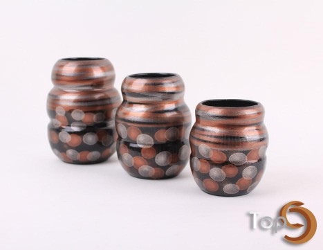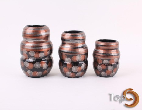 Description A set of 3 curve vases with line and polkadots motif