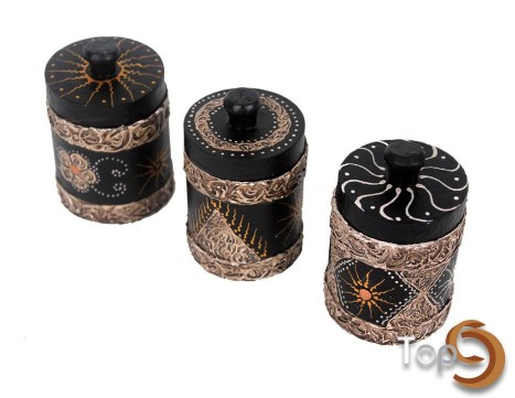 Kotak Kopi Bulat Kecil Hitam Antiq + Tutup