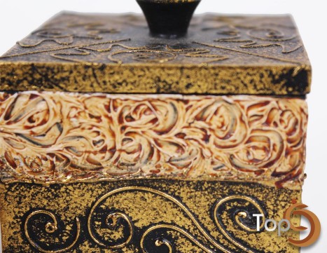 An antique box wooden jar and lid with decorative pattern, gold color