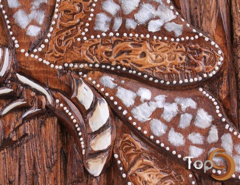 Description An animal carving wooden piece with glitter decoration and a wooden base