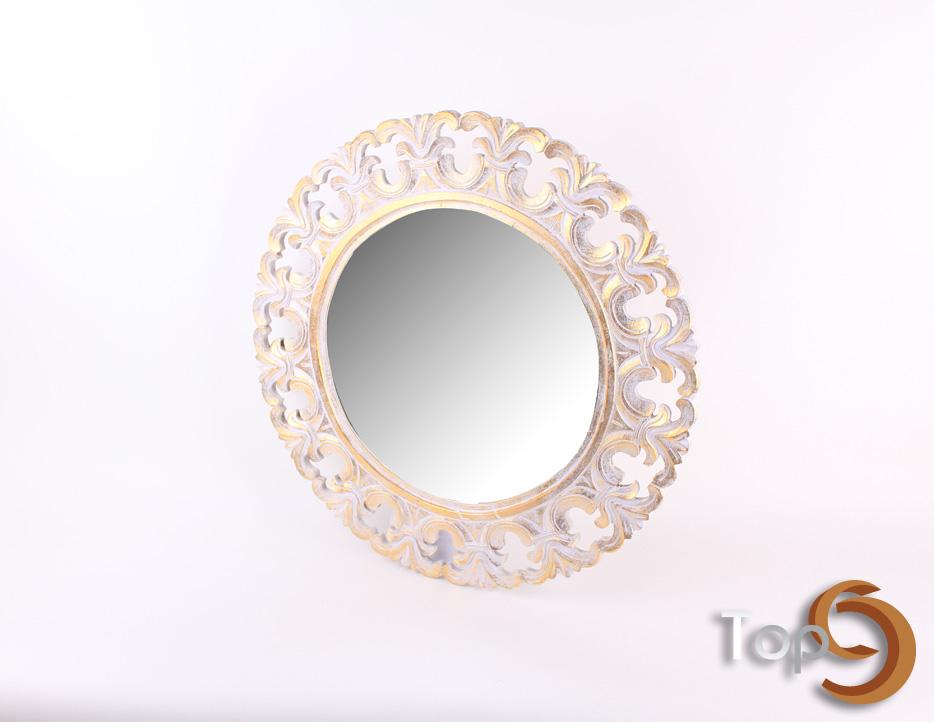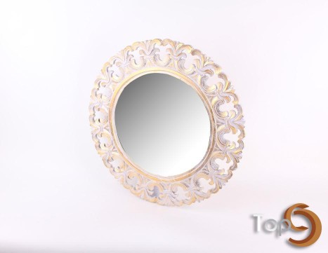 Description A round wall mirror with classic design, padma flower motif frame