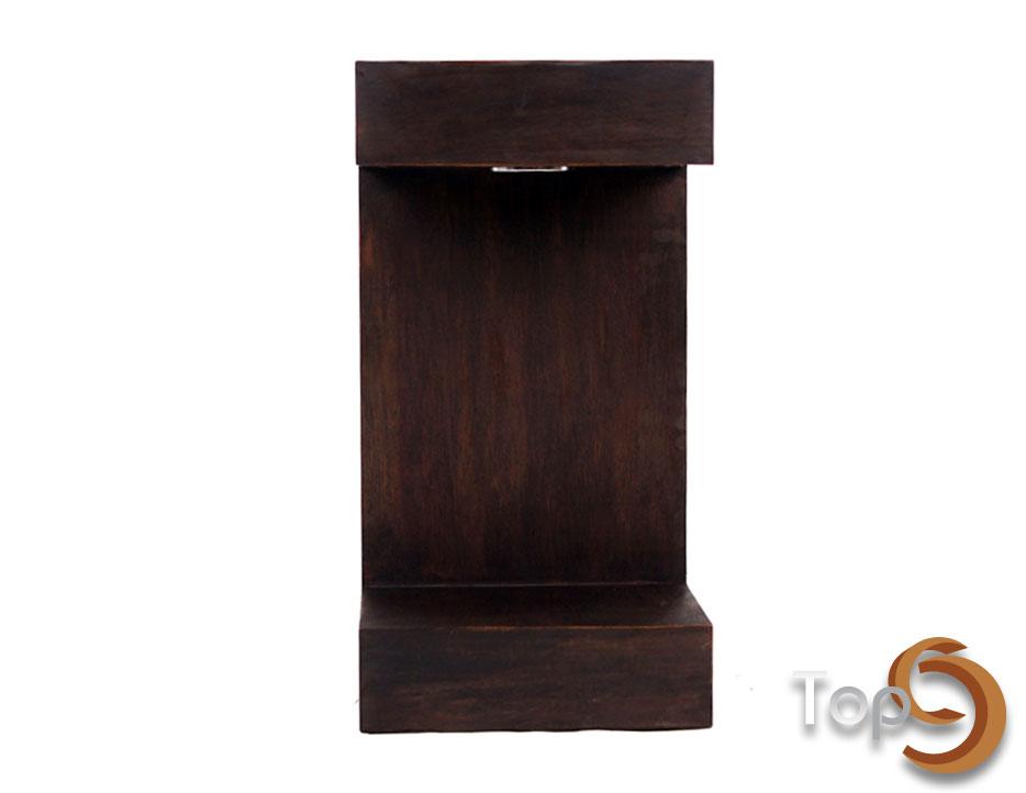 Description A ‘C’ shaped wall decoration from a wooden box with lamp inside