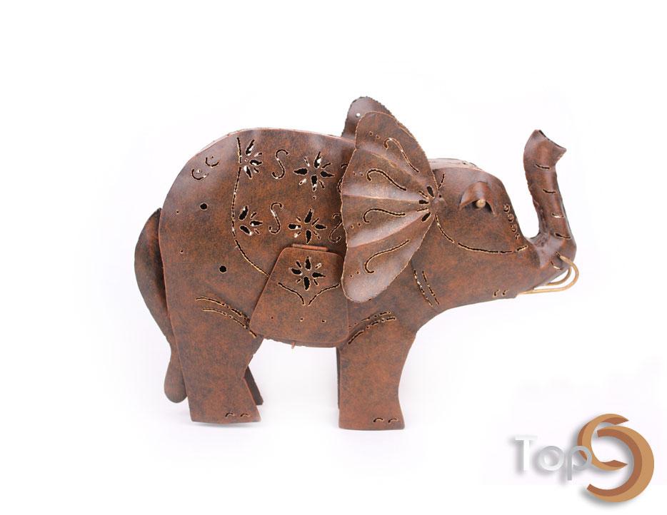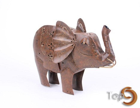 A metal elephant candle holder with 1 holder inside