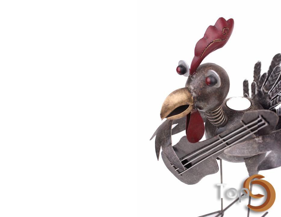A Rooster Playing Guitar Candle Holder with 1 Holder