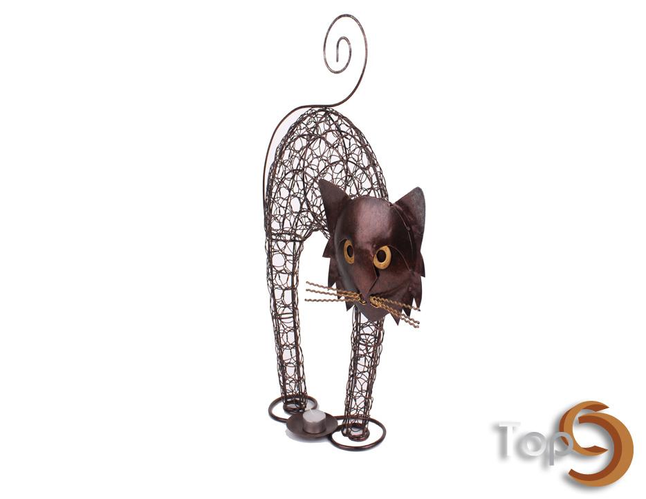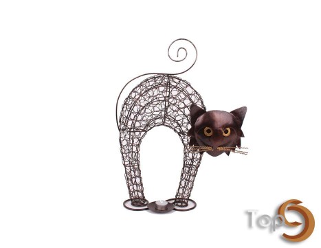Description A metal wire weaved cat candle holder
