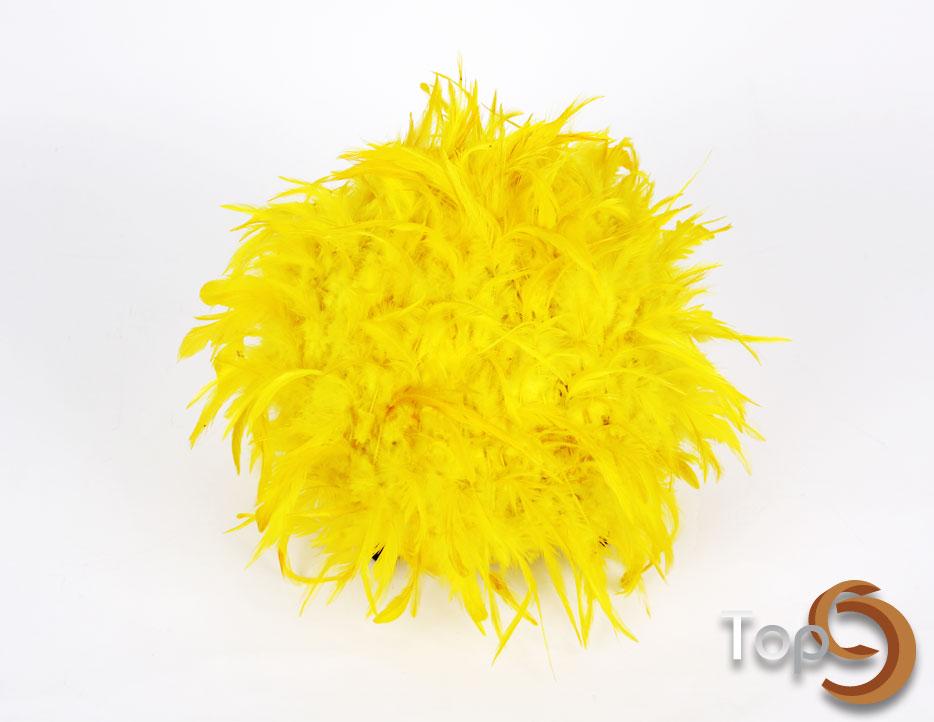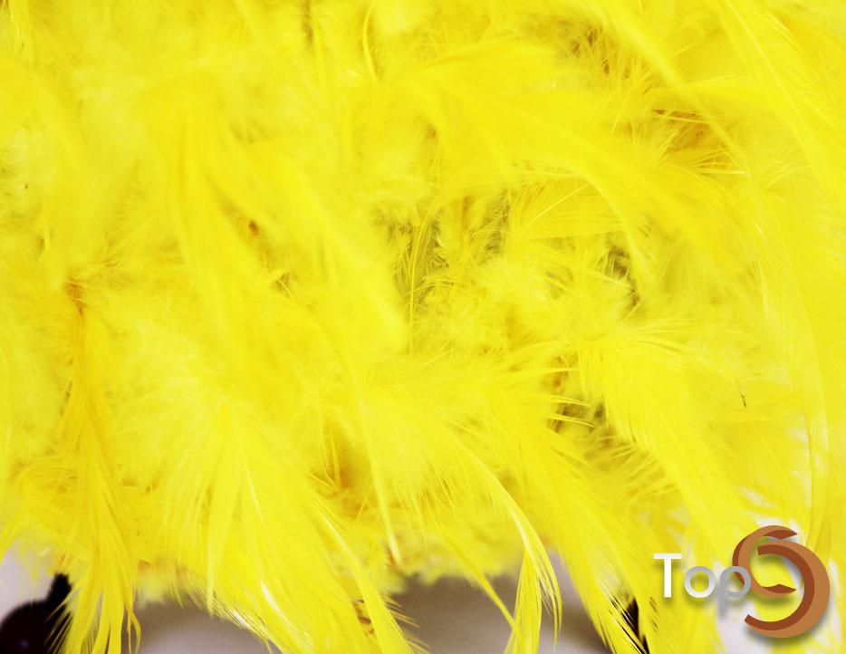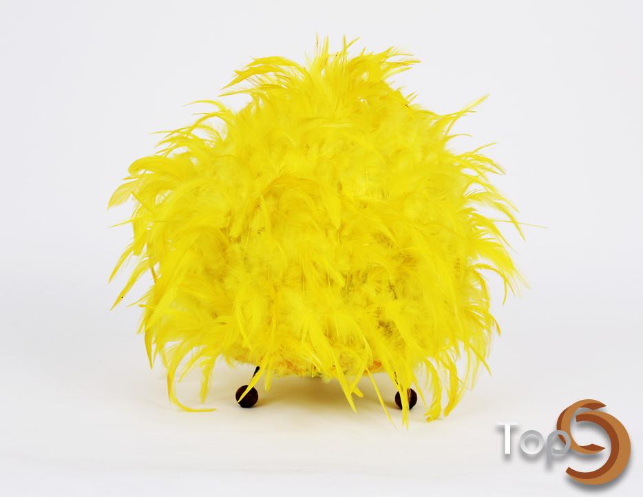 A table lamp with colorfull chicken feathers lamp shade