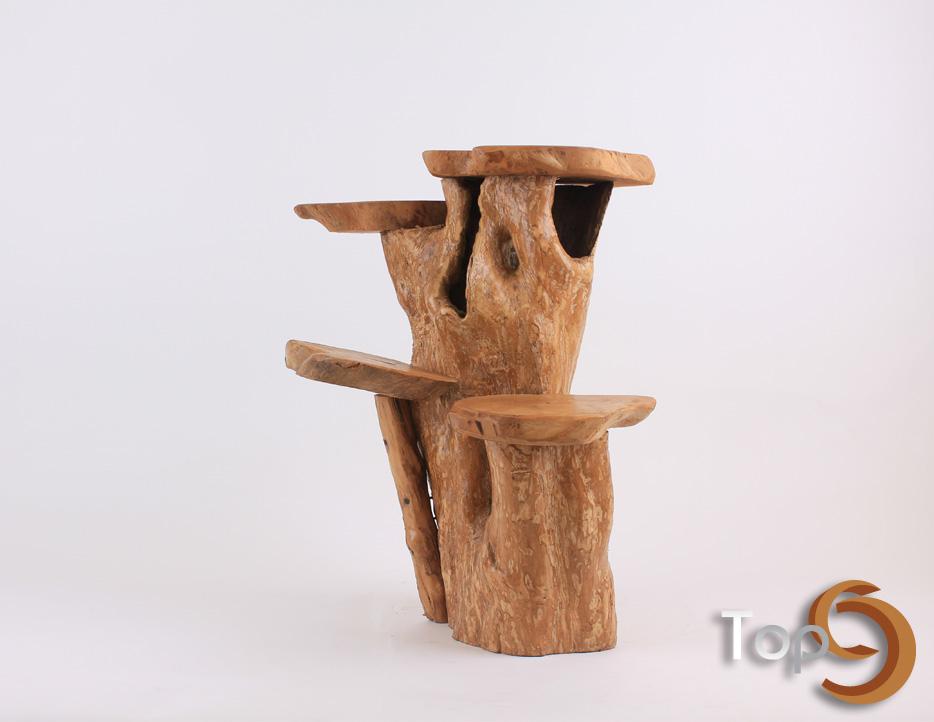 A wood display stand made from a tree branch