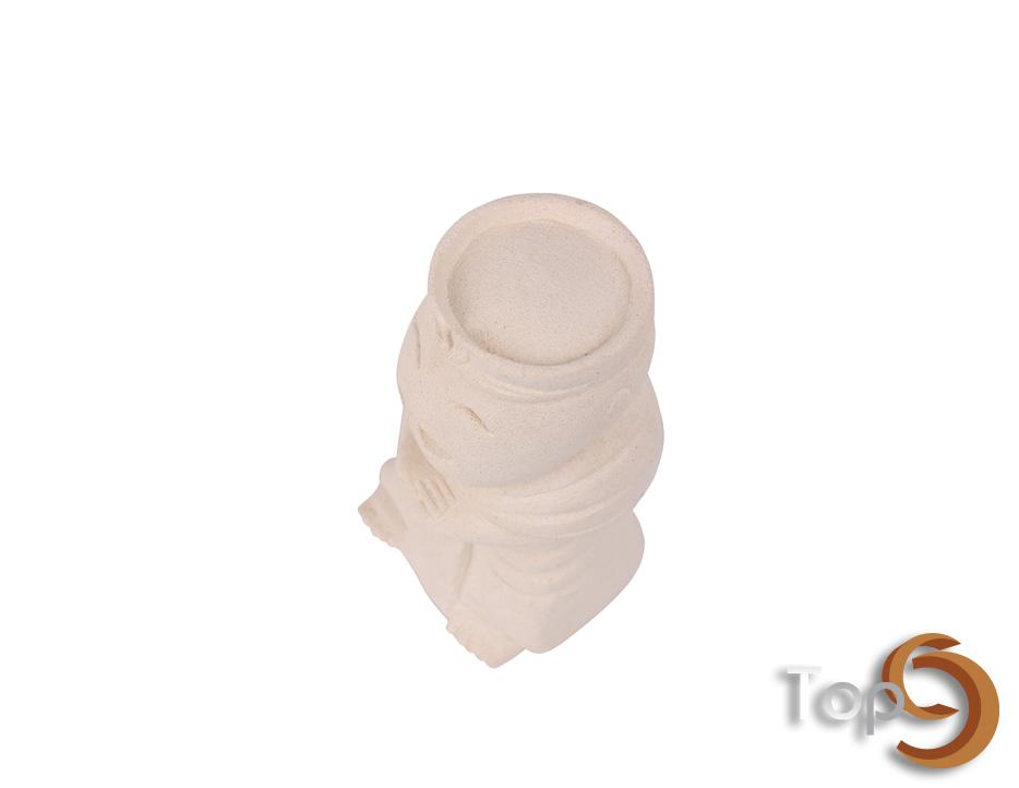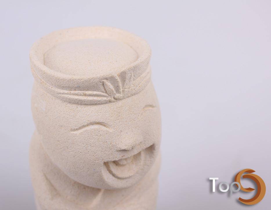 A hand carved white stone laughing Chinese man figurine
