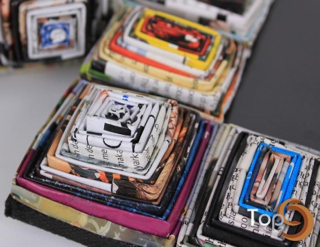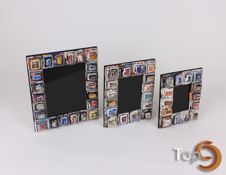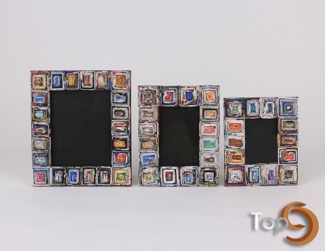 A set of 3 picture frames made from folded recycled magazine paper