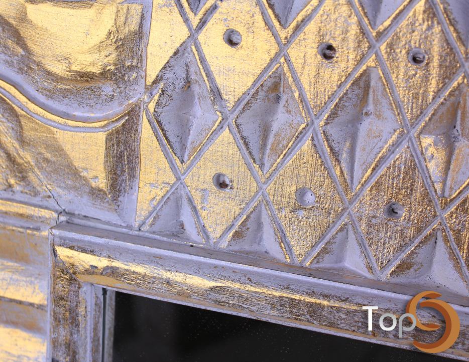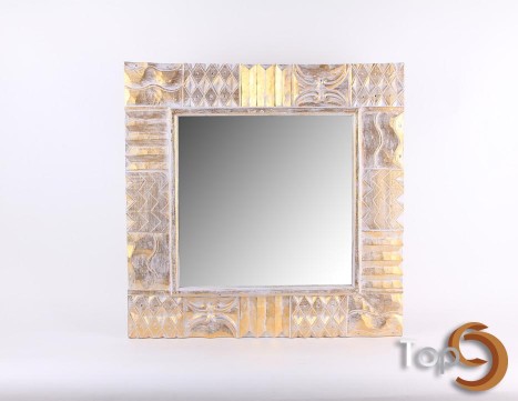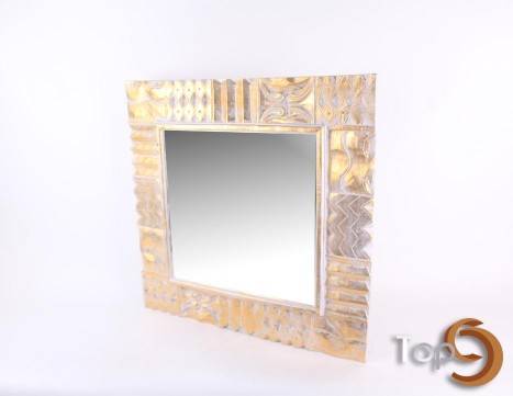 A wall mirror with wave carved frame