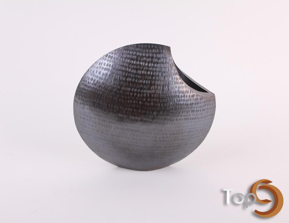 A unique textured round vase, black color