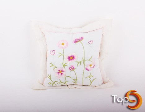 A cushion cover with flowers embroidery decoration