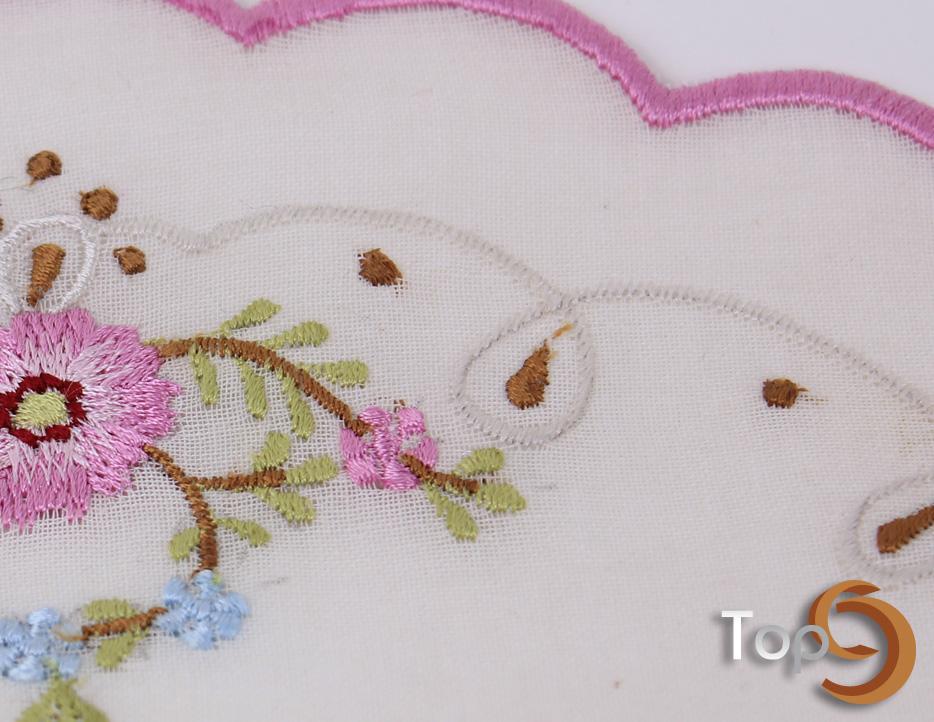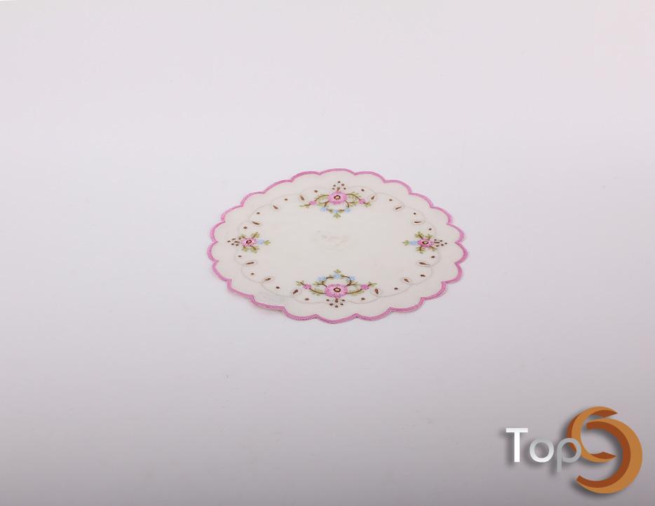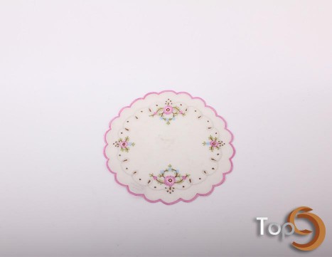 A circular shape doily with floral embroidery