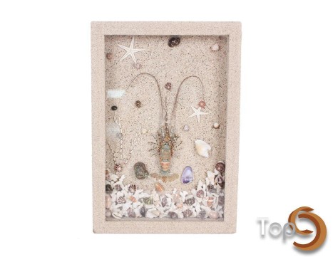 A rectangle wall art with lobster, shells and sand decoration