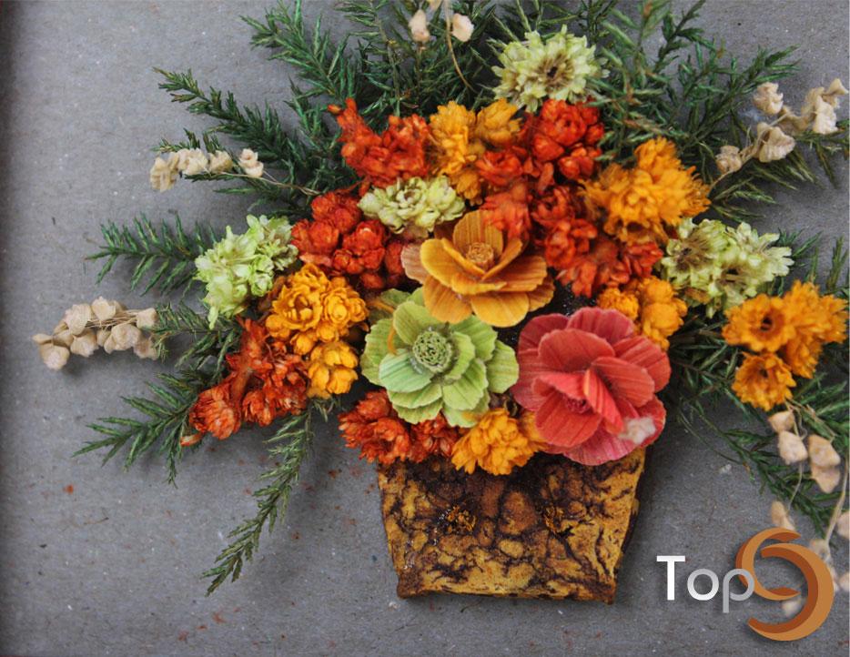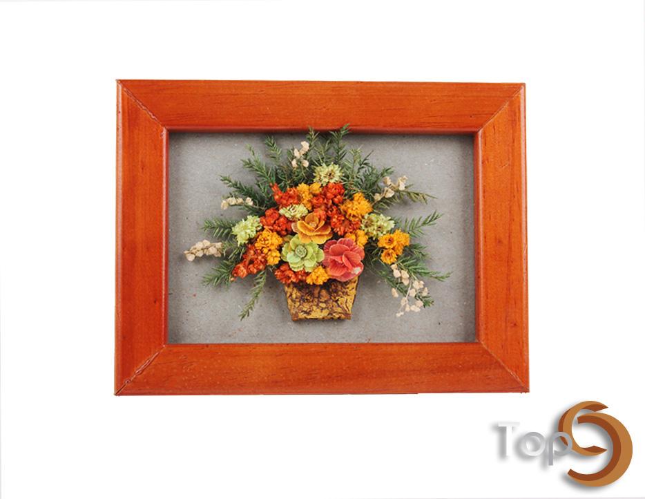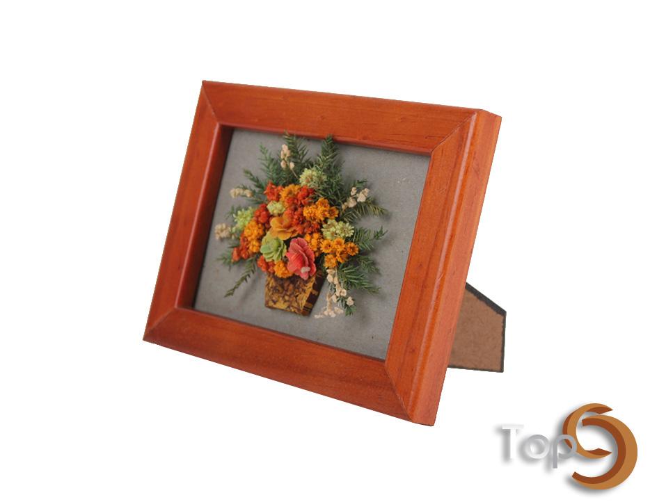 A wood frame with dried flower decoration