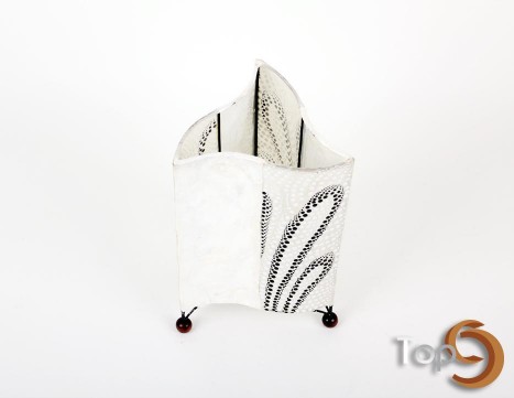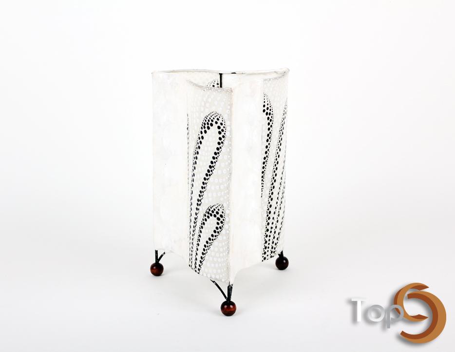 Description A sleek triangle table lamp made from shells and decorated with hand painting