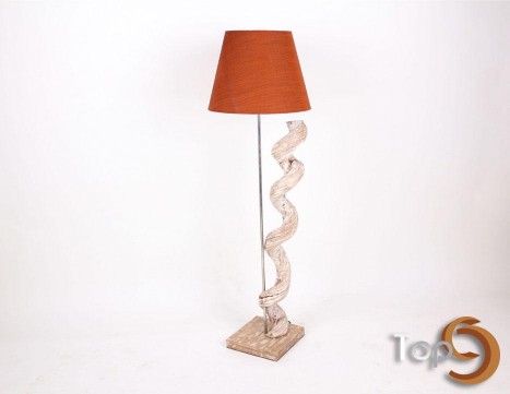 Description A floor lamp with a spiral driftwood decoration