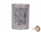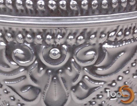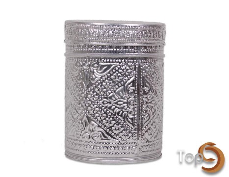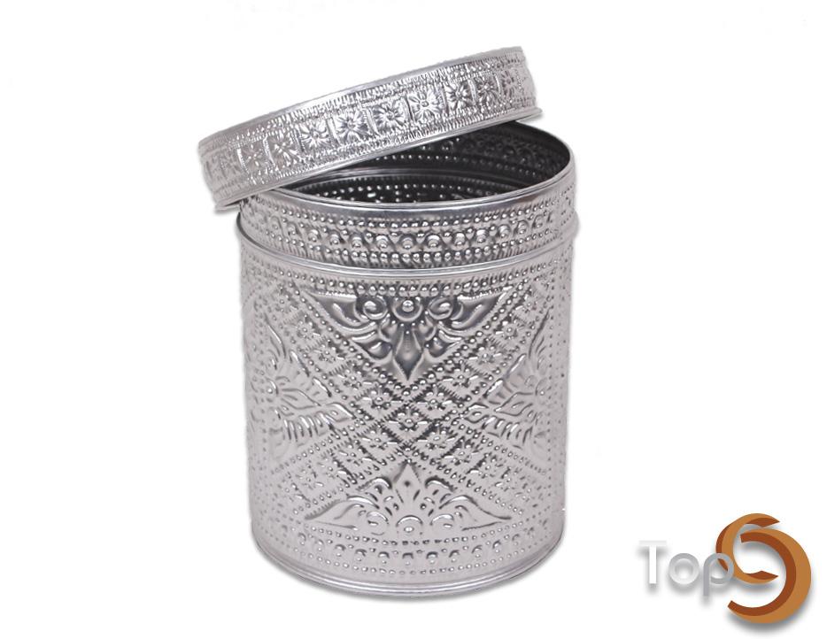 A round aluminium bin + lid with embossed pattern