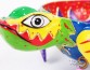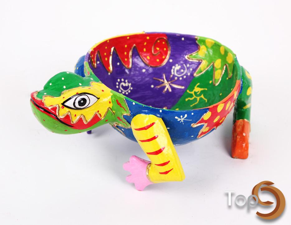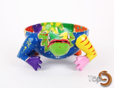 A frog shaped candy bowl with colorful painting