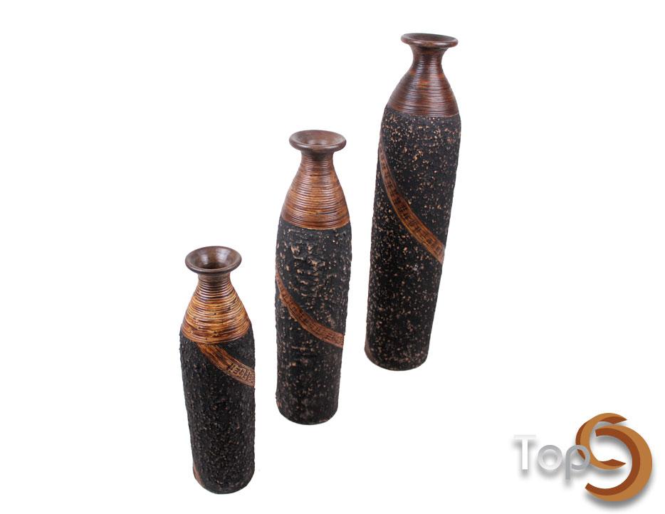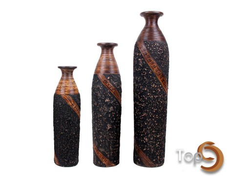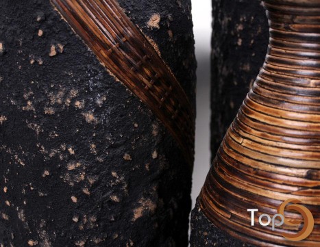 Description A cylinder vase with abstract texture, rattan wrapped vase neck and decoration