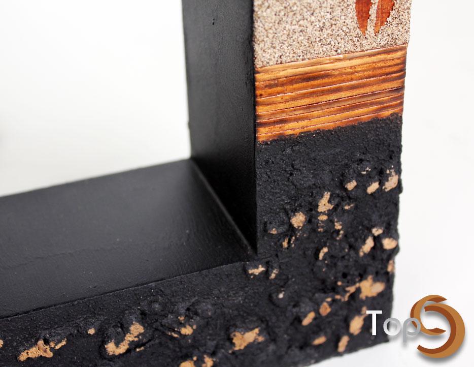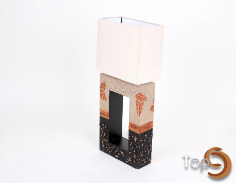 A wooden square table lamp with sand, rattan and textured decoration