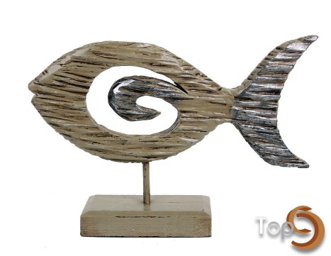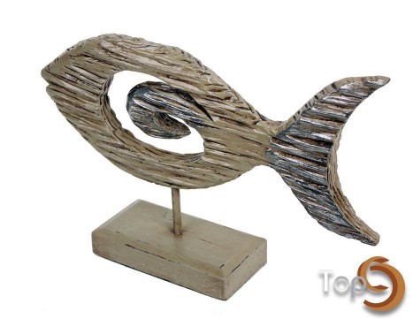 An antique grey fish centerpiece with textured body