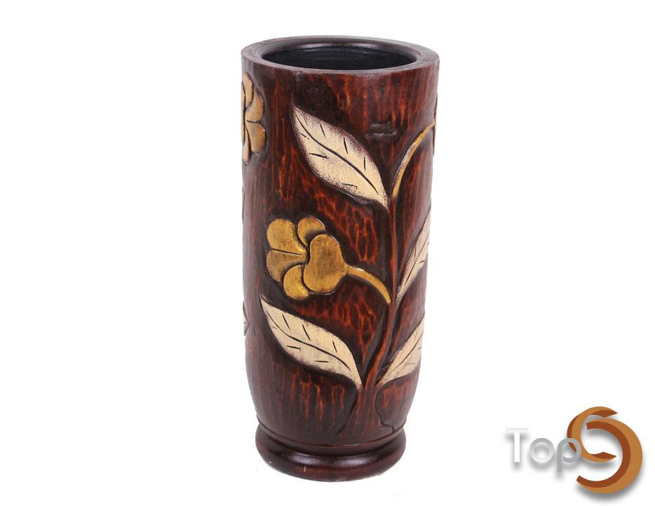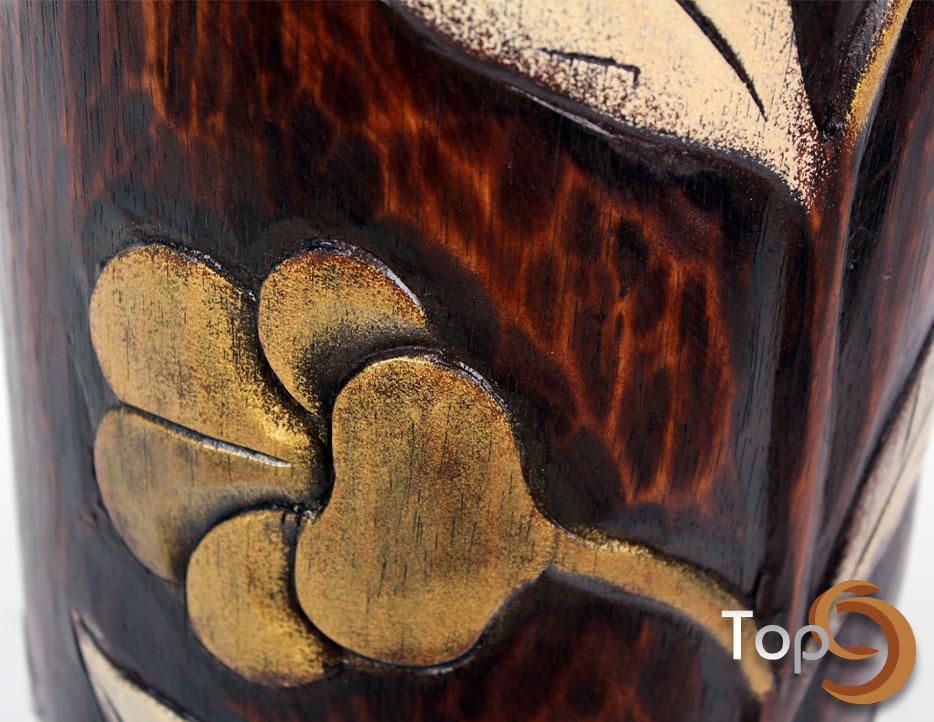 A natural oval table vase with flower motif