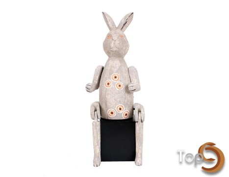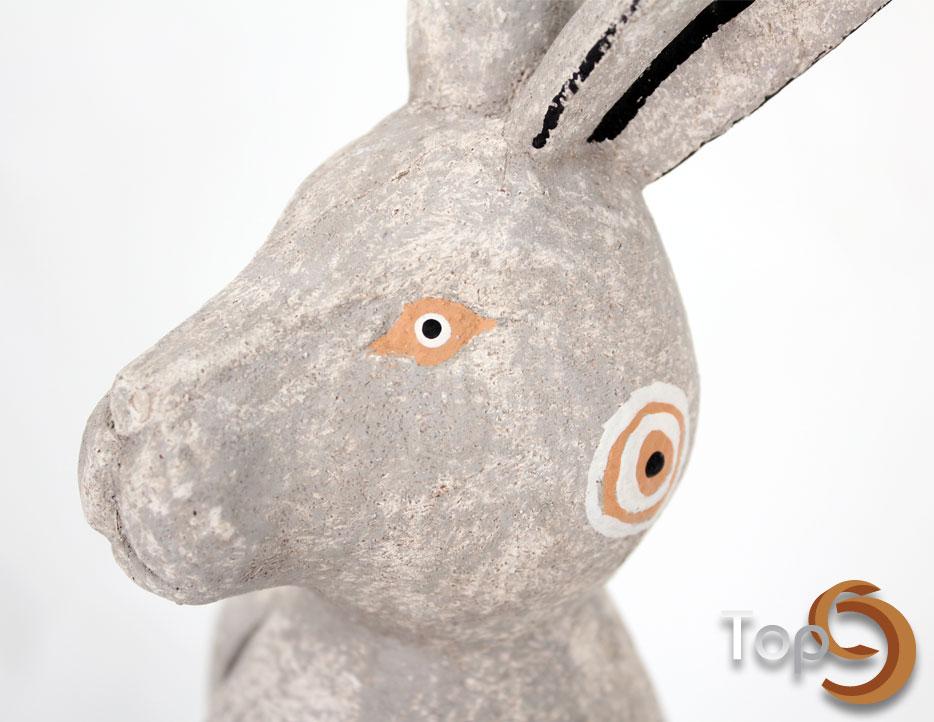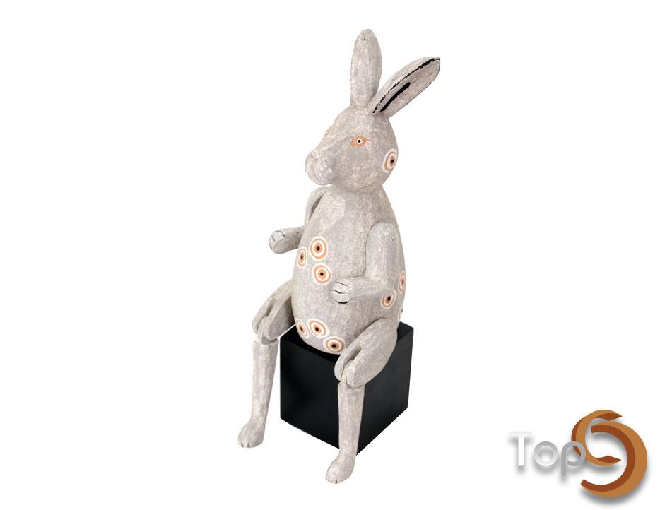 A rabbit puppet sitting on a black stand