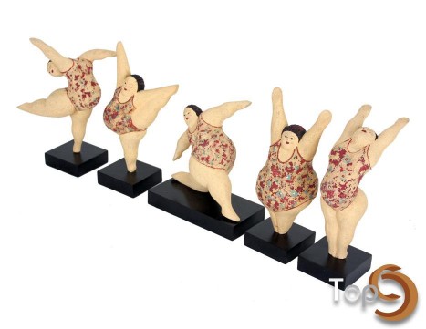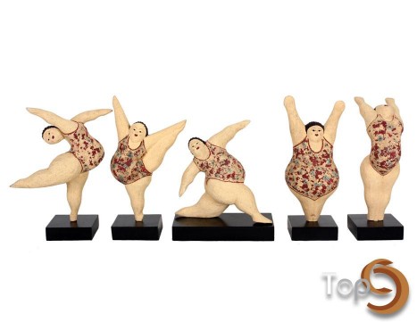 A set of 5 ladies doing aerobic with 5 different poses