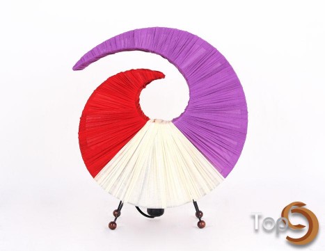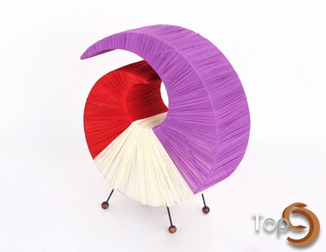 A ‘G’ shell shaped table lamp with colorful fabrics wrapped