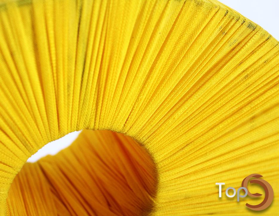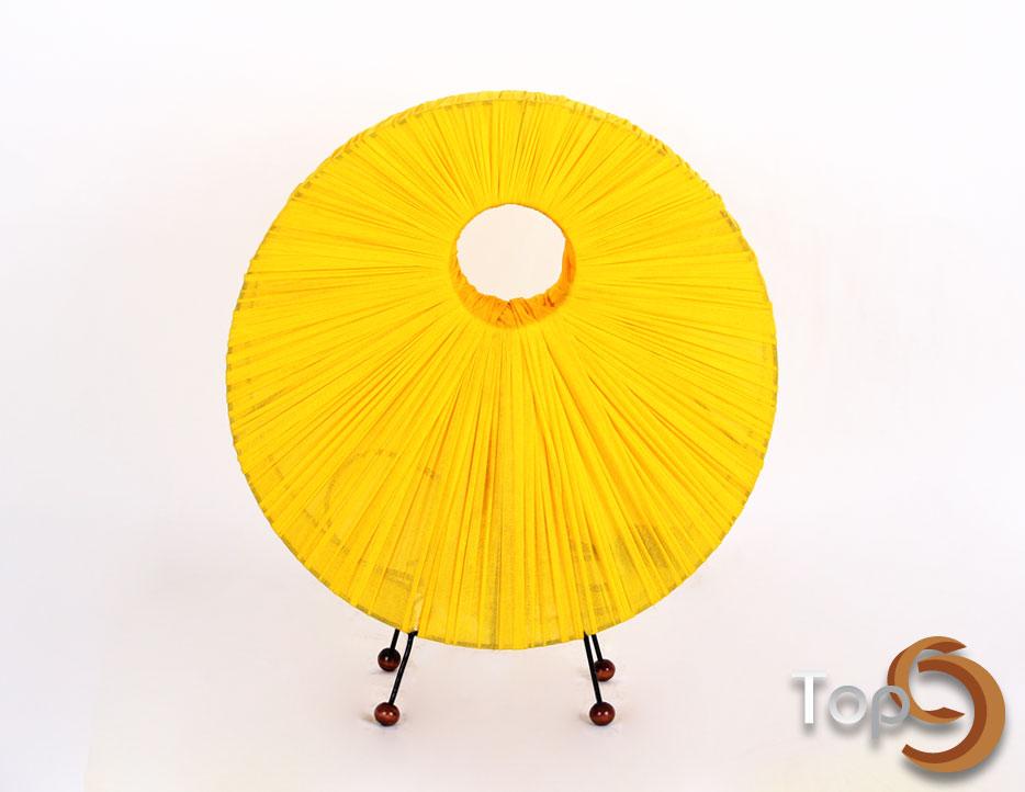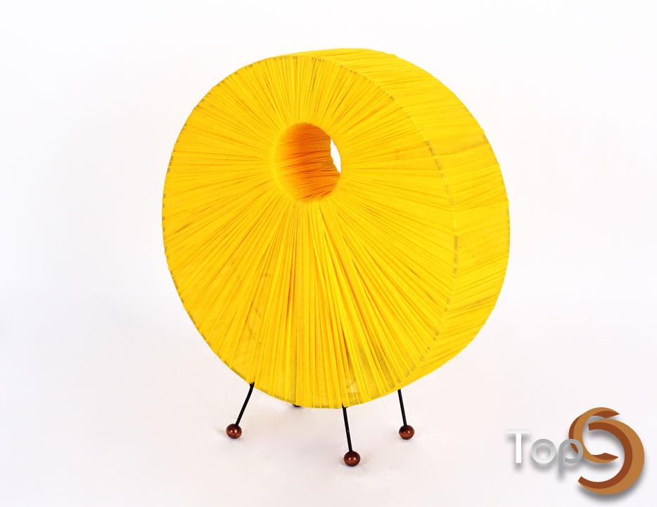 Description A donut shaped table lamp with colorful fabrics wrapped