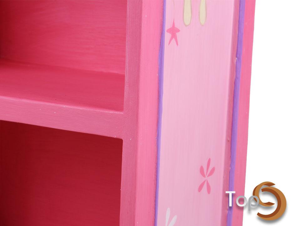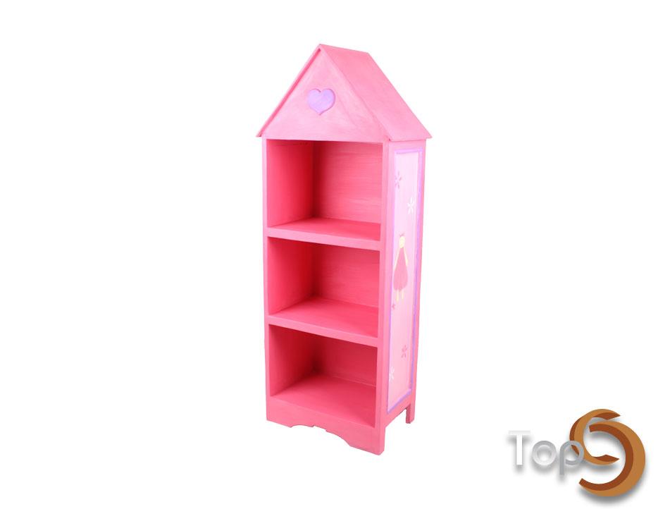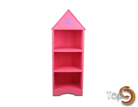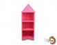 A house shaped showcase with 3 shelves and colorful motif