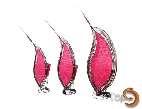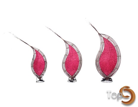 A set of 3 leaf shaped table lamp with colored fabric and palm leaves ribs variation