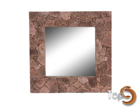A square mirror with pumice stone frame