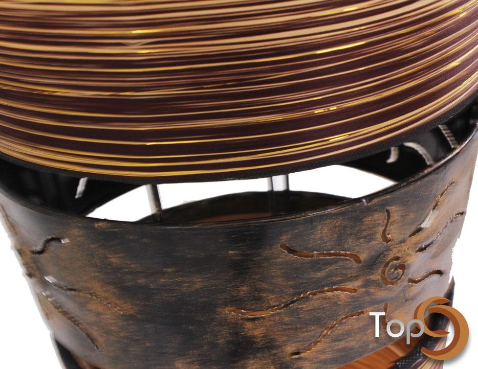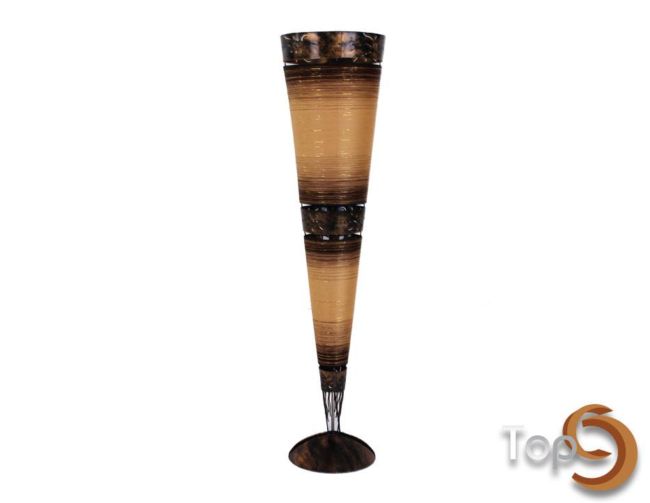 Description A cone floor lamp made from metal with colored threads variation
