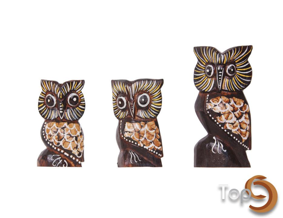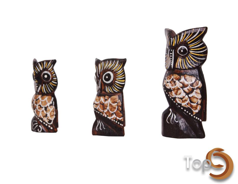 Description A set of 3 side facing owl figurines