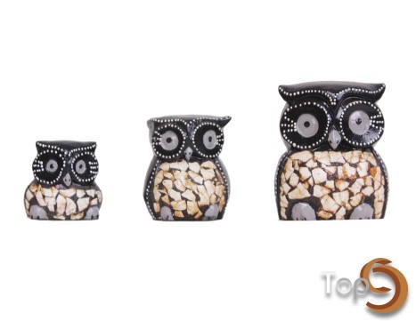 Description A set of 3 fat owl figurines