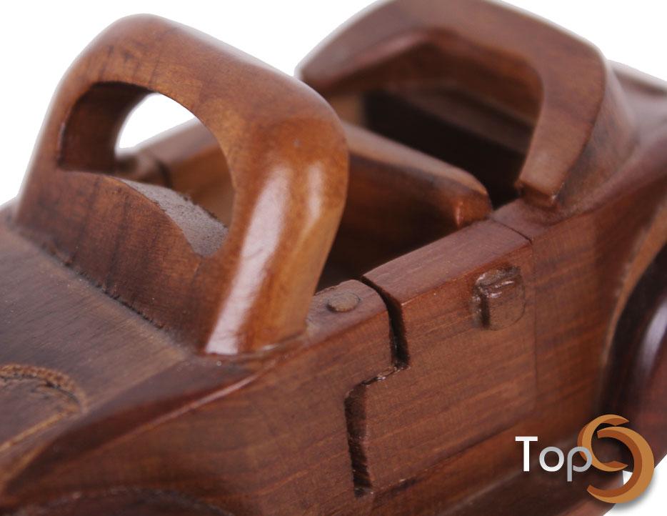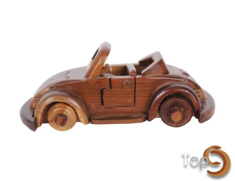 A wooden open top VW car figurine