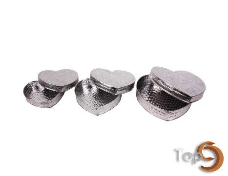 A set of 3 heart shaped aluminium boxes