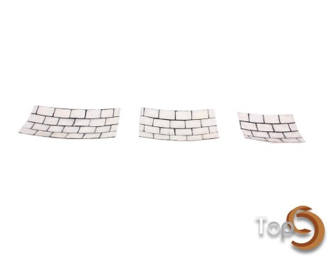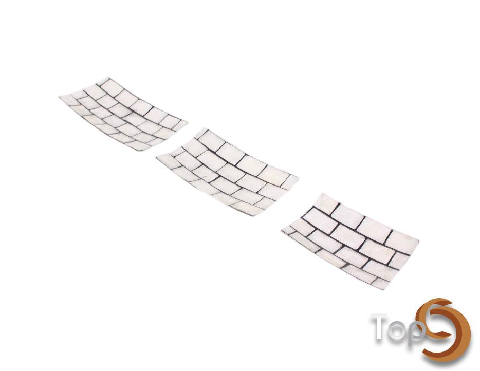 Description A set of 3 curved plates made from shells with many motifs